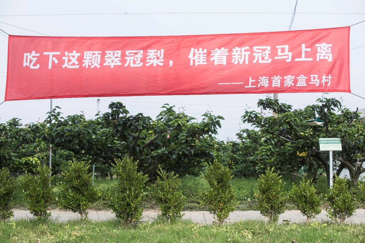 (2020年5月13日,上海首個(gè)盒馬村亮相,該地是阿里巴巴翠冠梨數(shù)字農(nóng)業(yè)基地)
