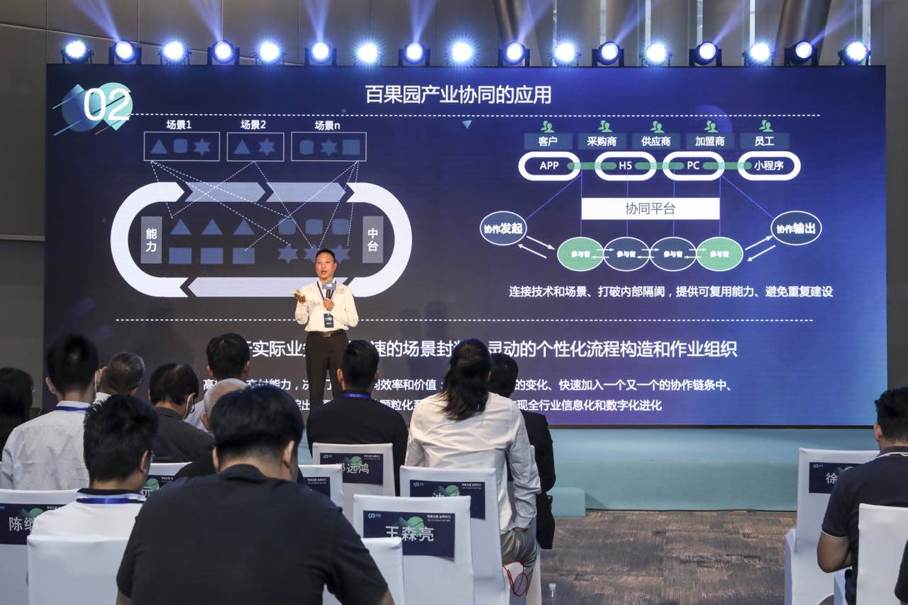 “雁陣”協(xié)同平臺通過SaaS、APaaS組建和iPaaS,將場景應(yīng)用和任務(wù)驅(qū)動完美地連接在了一起。百果園集團(tuán)副總裁徐永劍表示,“連接型”才是以前傳統(tǒng)OP軟件時(shí)代的弱項(xiàng),是新SaaS產(chǎn)品的甜區(qū)。作為“雁陣”協(xié)同平臺上的業(yè)務(wù)生態(tài)之一“百果園”,便是將其在生鮮領(lǐng)域多年來的IT生態(tài)能力進(jìn)行開放和共享。
