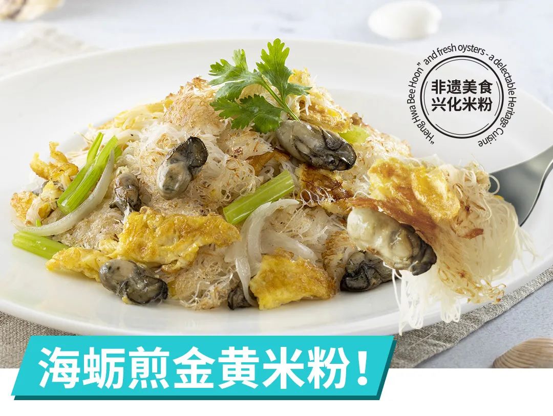 海蠣煎金黃米粉:純大米制作的興化米粉,經細火耐心煎香,淋上蛋漿,配上粒粒鮮的海蠣,吃時將米粉和海蠣一同送入口中,外脆內柔軟,海蠣鮮與米香交融,別忘了蘸點莆田秘制辣媽醬來吃,又是另一番惹味!