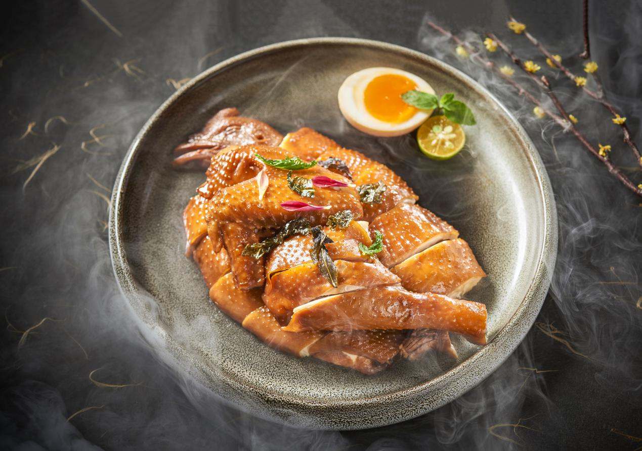 西湖的龍井遇上廣東的走地雞,是西子韻味與羊城粵味完美碰撞,配以煙熏加熱技法,龍井清香撲鼻而來,肉質(zhì)鮮嫩,惹味可口,粵式美味是也。