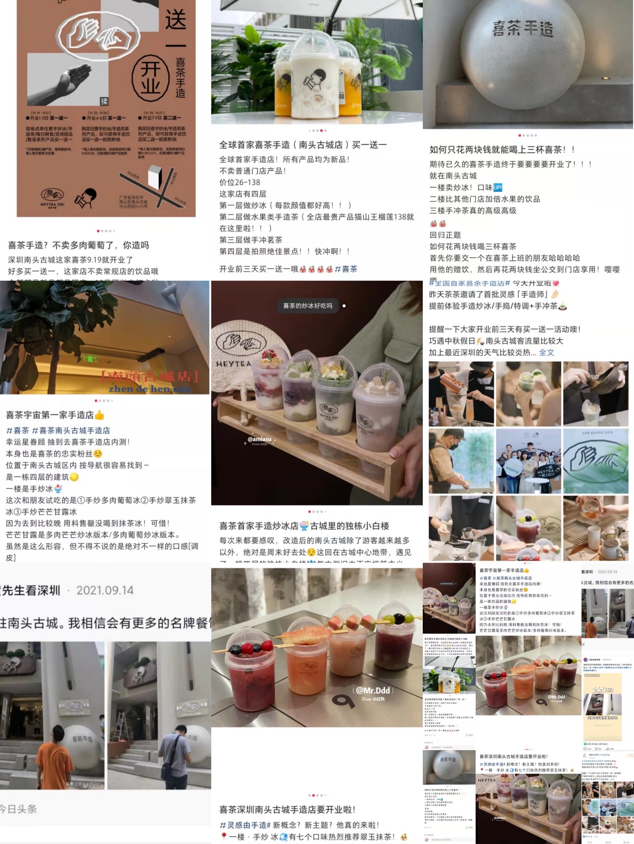 雖然才是正式營業(yè)的第一天,但喜茶南頭古城店憑借多款手造新品,以及傳統(tǒng)與現(xiàn)代結(jié)合的靈感空間設(shè)計,迅速聚攏了超強人氣。在社交媒體平臺上,“打卡喜茶手造店”“喜茶手造店初體驗”“喜茶手造飲品測評”的話題也頻頻出現(xiàn)。