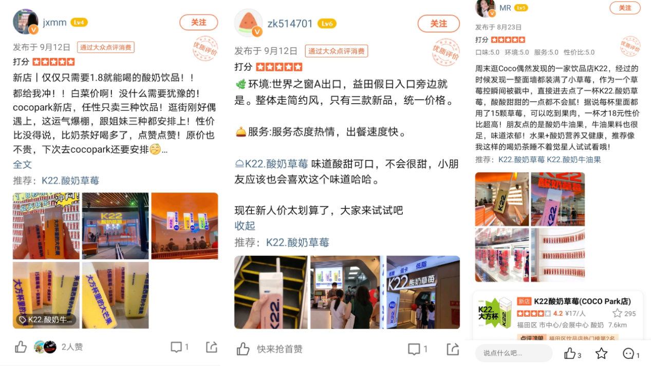 目前K22.酸奶草莓深圳門店已正式開業(yè),試營業(yè)期間已榮登大眾點評飲品熱門榜單并收獲了相當不錯的人氣和好評,相信K22.酸奶草莓在深圳的市場發(fā)展一定能再創(chuàng)輝煌。