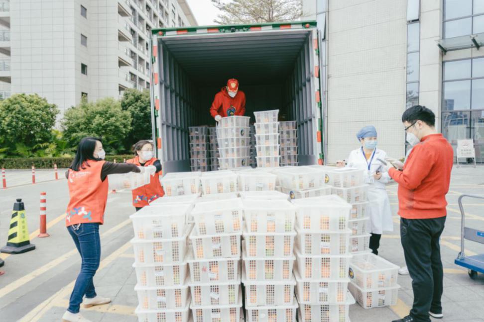 2月6日,百果園工會在深圳龍崗區(qū)南灣街道總工會的支持下,為深圳市第三人民醫(yī)院送去1600余份水果,助力奮戰(zhàn)在抗疫一線的醫(yī)護(hù)人員補(bǔ)充營養(yǎng)。
