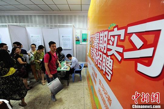 資料圖片:長(zhǎng)沙舉辦暑期實(shí)習(xí)生專(zhuān)場(chǎng)招聘 來(lái)源:中新社