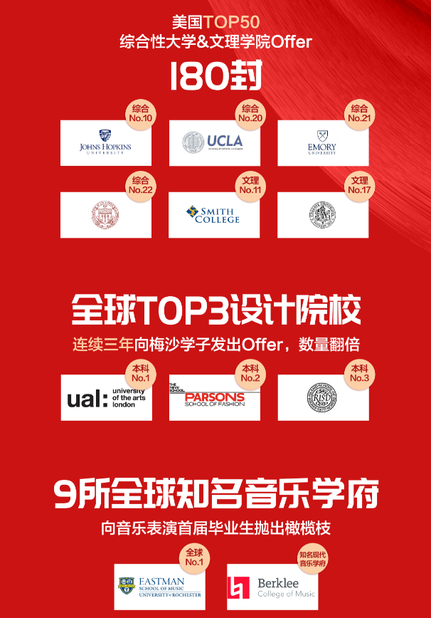 2018年,高端藝術(shù)教育品牌—— 萬(wàn)科梅沙書院·藝術(shù)學(xué)院 應(yīng)運(yùn)而生,為想要在視覺設(shè)計(jì)和音樂表演方向深造的學(xué)子打開了新的大門。除了專業(yè)課與基礎(chǔ)課程,藝術(shù)學(xué)院還提供獨(dú)特的跨學(xué)科項(xiàng)目,從學(xué)術(shù)與藝術(shù)上提高學(xué)生的綜合能力和競(jìng)爭(zhēng)力。在今年66份世界著名藝術(shù)院校錄取中,囊括QS世界大學(xué)排名藝術(shù)與設(shè)計(jì)學(xué)院本科排名前3的 倫敦藝術(shù)大學(xué)、帕森斯設(shè)計(jì)學(xué)院和羅德島設(shè)計(jì)學(xué)院 ,三年錄取量呈倍增趨勢(shì);全球九所音樂學(xué)院向首屆音樂表演畢業(yè)生伸出橄欖枝,涵蓋世界知名的伊斯曼音樂學(xué)院和美國(guó)現(xiàn)代音樂殿堂伯克利音樂學(xué)院。