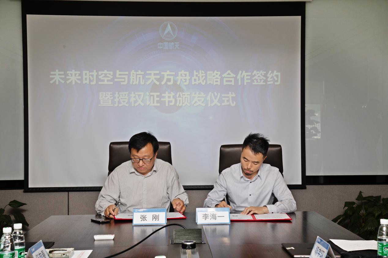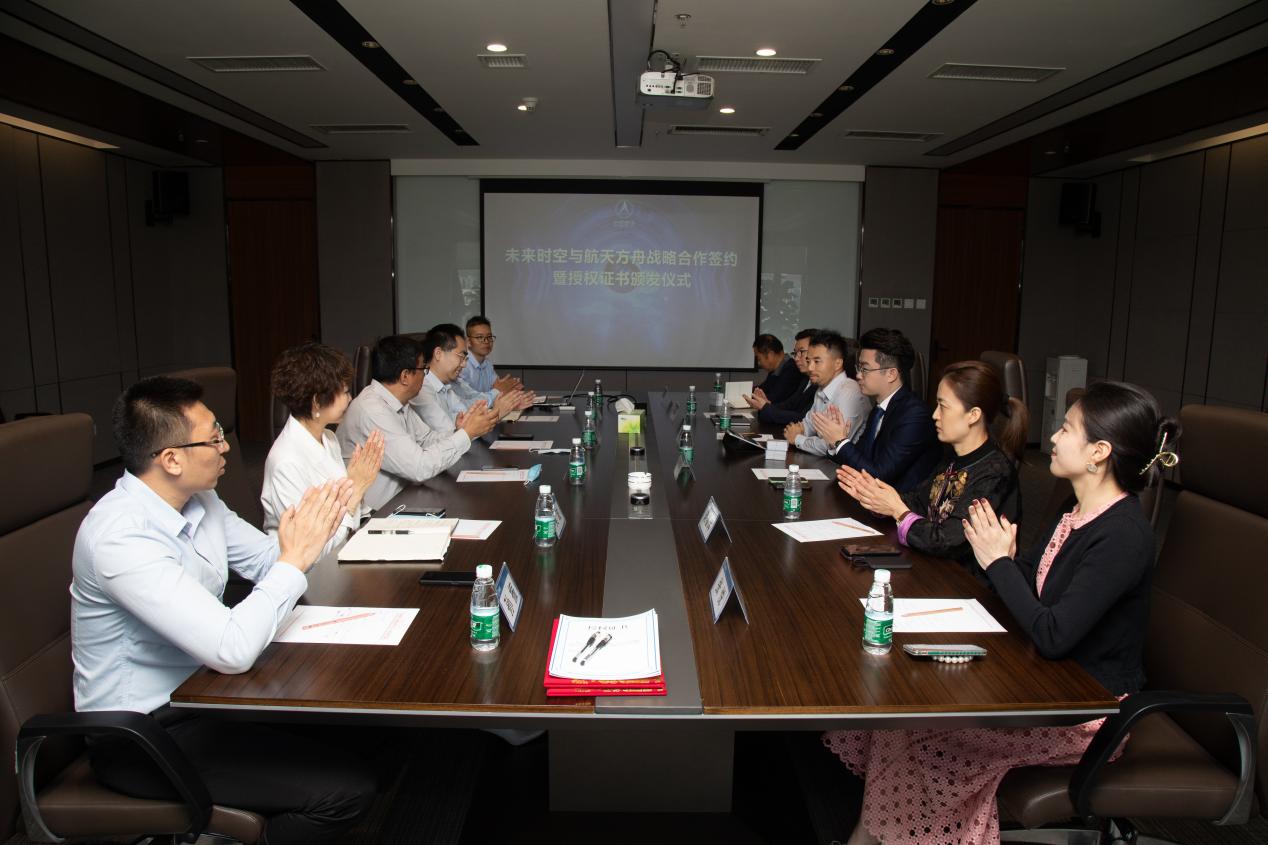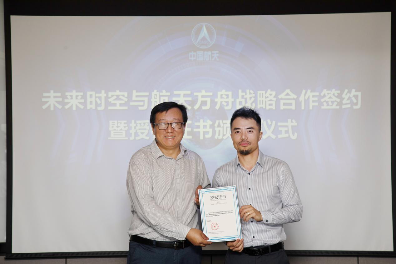 見(jiàn)圳客戶端·深圳新聞網(wǎng)2021年5月31日訊 (記者 陳彬)為深入推進(jìn)航天科技文化技術(shù)在社會(huì)生活、人民健康、科普教育、素質(zhì)教育和文化產(chǎn)業(yè)等領(lǐng)域的成果轉(zhuǎn)化和廣泛應(yīng)用,在中國(guó)航天系統(tǒng)科學(xué)與工程研究院有關(guān)領(lǐng)導(dǎo)的關(guān)心幫助下,未來(lái)時(shí)空(深圳)文化產(chǎn)業(yè)有限公司和北京航天方舟空間技術(shù)有限公司就航天文創(chuàng)產(chǎn)品開(kāi)發(fā)、航天康養(yǎng)項(xiàng)目建設(shè)、航天科普教育及商業(yè)化航天器應(yīng)用等方面達(dá)成了全面合作,于5月28日上午在北京簽署戰(zhàn)略合作協(xié)議并頒發(fā)授權(quán)證書(shū)。