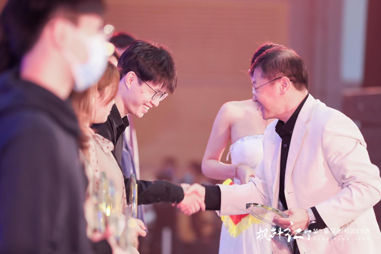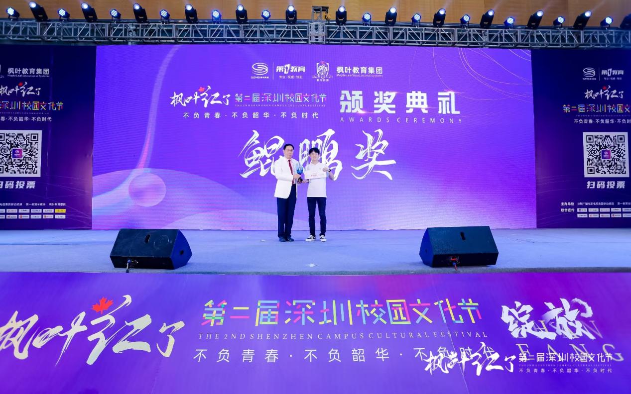 另據(jù)了解,本屆活動不以競賽為目的,不設(shè)專業(yè)評委,不設(shè)專業(yè)分?jǐn)?shù),不設(shè)獎牌等級,而是以鼓勵學(xué)生全面發(fā)展、校園文化交流為初心,由觀眾們自發(fā)投票評選出魅力社團獎、優(yōu)秀指導(dǎo)老師獎、鯤鵬獎、綻放獎、最具人氣獎。記者從現(xiàn)場了解到,獲得本屆魅力社團獎的學(xué)校有10所,分別是:深圳市南山區(qū)文理實驗學(xué)校(集團)《模擬聯(lián)合國社》、南山區(qū)前海學(xué)?!栋羟蜿牎贰⑸钲趯嶒瀸W(xué)校高中部《回聲合唱團》、深圳高級中學(xué)(集團)中心校區(qū)《深高學(xué)生戲劇團》、深圳市楓葉學(xué)?!队⒄Z戲劇社》、深圳市龍華中學(xué)《跆拳道空手》、深圳市蛇口育才教育(集團)育才中學(xué) 《404樂隊》、深圳市育新學(xué)校 《The best軍樂團》、南方科技大學(xué)附屬中學(xué)《機器人隊》、深圳市藝術(shù)高中《鐘呂交響管樂團》;獲得本屆校園文化節(jié)鯤鵬獎(唯一)的學(xué)校是:南方科技大學(xué)附屬中學(xué);獲得本屆校園文化節(jié)綻放獎的是9所學(xué)校,分別是:深圳市第一職業(yè)技術(shù)學(xué)校、深圳中學(xué)、深圳市藝術(shù)高中、深圳市寶安中學(xué)(集團)、深圳市第三職業(yè)技術(shù)學(xué)校、深圳市楓葉學(xué)校、深圳市龍崗區(qū)龍城高級中學(xué)、寶安區(qū)為明雙語實驗學(xué)校、深圳市蛇口育才教育(集團)育才中學(xué);獲得現(xiàn)場最具人氣獎的學(xué)校有10所,分別是:深圳市第一職業(yè)技術(shù)學(xué)校、深圳市福田區(qū)華強職業(yè)技術(shù)學(xué)校、深圳市第三職業(yè)技術(shù)學(xué)校、深圳大學(xué)附屬中學(xué)、紅嶺中學(xué)(集團)石廈初中部、龍崗區(qū)蘭著學(xué)校、萬科梅沙書院、深圳市南山區(qū)文理實驗學(xué)校(集團)、筍崗中學(xué)、寶安中學(xué)(集團);最后同時獲得本屆校園文化節(jié)優(yōu)秀指導(dǎo)老師獎的學(xué)校分別來自:南方科技大學(xué)附屬中學(xué)、深圳市第一職業(yè)技術(shù)學(xué)校、深圳中學(xué)、深圳市蛇口育才教育(集團)育才中學(xué)、深圳市寶安中學(xué)(集團)、深圳市第三職業(yè)技術(shù)學(xué)校、深圳市藝術(shù)高中、深圳市楓葉學(xué)校、寶安區(qū)為明雙語實驗學(xué)校、深圳市龍崗區(qū)龍城高級中學(xué)。
