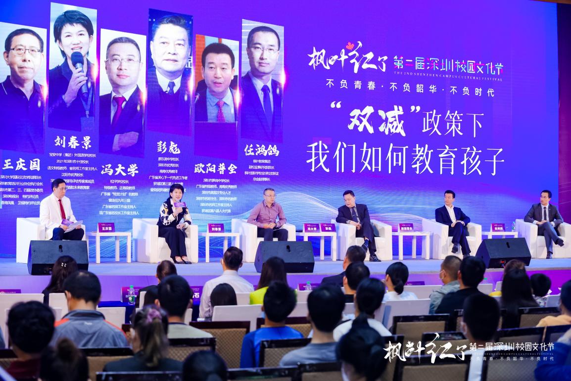 下午,現(xiàn)場舉行“雙減政策,該如何教育我們的孩子”專家論壇,深圳大學(xué)國際交流學(xué)院原院長王慶國、羅湖區(qū)第三屆人大代表彭彪、寶安中學(xué)(集團)外國語學(xué)校校長劉春景、松坪學(xué)校校長馮大學(xué)、筍崗中學(xué)校長歐陽普全、楓葉教育集團副校監(jiān)兼研究院院長任鴻鴿等六位嘉賓出席本屆論壇。圍繞雙減政策下,如何教育孩子?進行深層次的探討,分享各自的觀點與建議,為廣大學(xué)生與家長解疑答惑。
