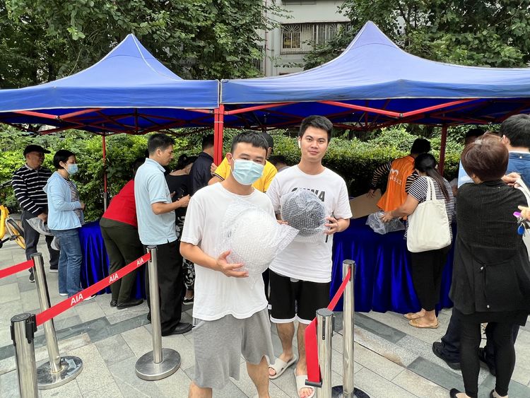 居民現(xiàn)場免費領(lǐng)取安全頭盔