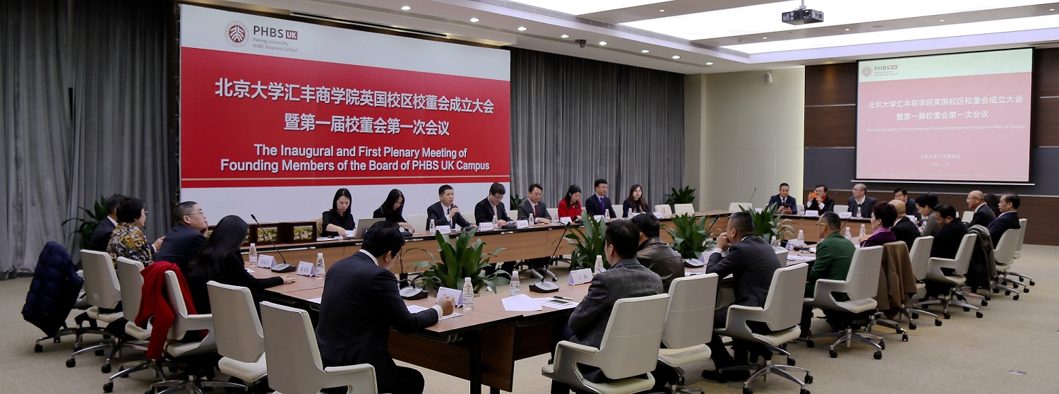2018年1月13日,北京大學(xué)匯豐商學(xué)院英國(guó)校區(qū)校董會(huì)成立大會(huì)暨第一屆校董會(huì)第一次會(huì)議在學(xué)院509會(huì)議室隆重舉行。
