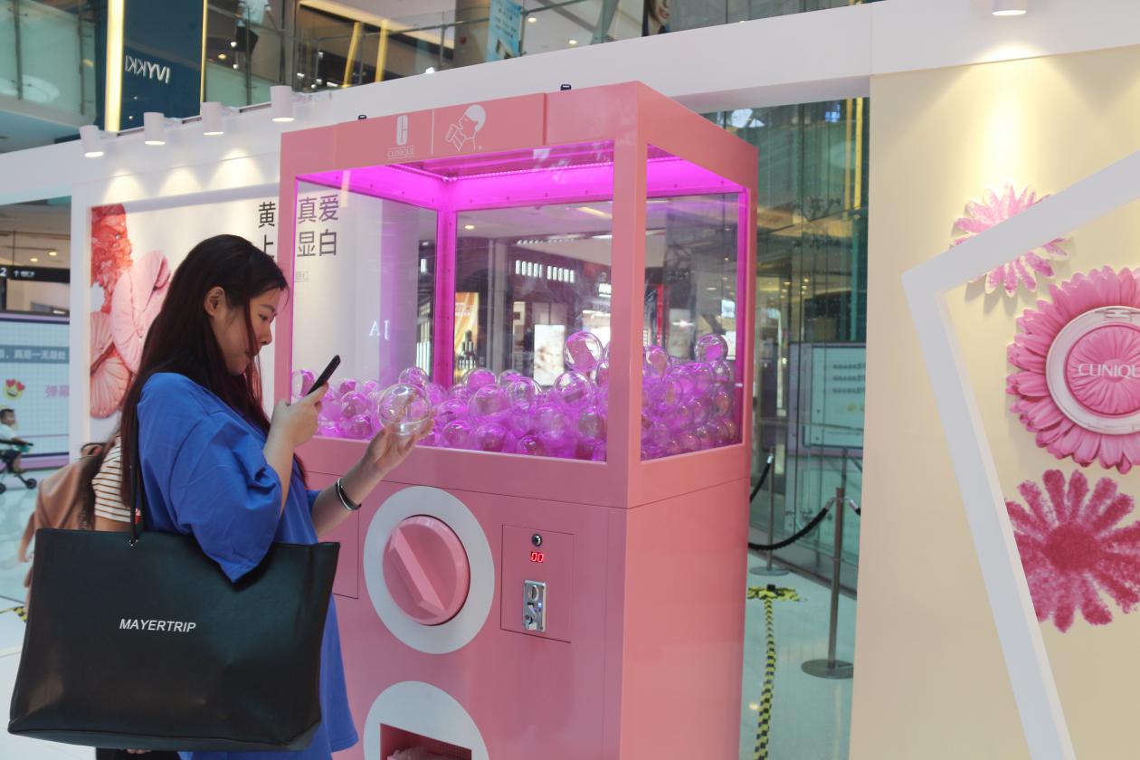 在參與了四個(gè)主題拍照區(qū)互動(dòng)后,即可得免費(fèi)扭蛋幣一枚。憑此可以到夢(mèng)幻燈箱墻處碼扭蛋,贏取限量版禮盒,小雛菊腮紅,喜茶免排隊(duì)券和喜茶免費(fèi)贈(zèng)飲劵等等。