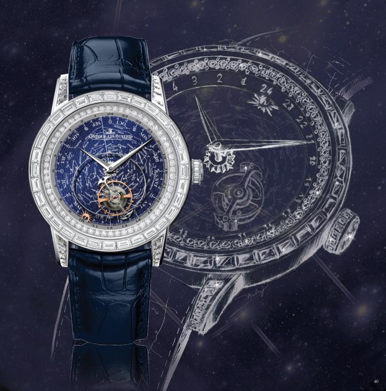 ????積家Master Grande Tradition Tourbillon Céleste超卓傳統(tǒng)陀飛輪大師系列星空腕表以讓人目眩神迷的方式詮釋時(shí)間。為了充分展現(xiàn)腕表的天文特性,軌道式飛行陀飛輪顯示的為恒星時(shí)間而非太陽(yáng)時(shí)間,比太陽(yáng)時(shí)間縮短近四分鐘。在這款腕表的表盤外沿,附帶太陽(yáng)標(biāo)志的指針以24小時(shí)為一周在表盤上轉(zhuǎn)動(dòng)。表圈顯示了24小時(shí)刻度、黃道十二宮星座與月份。軌道式飛行陀飛輪與星辰和星座同步運(yùn)轉(zhuǎn),和表盤共演一段恒星之舞。