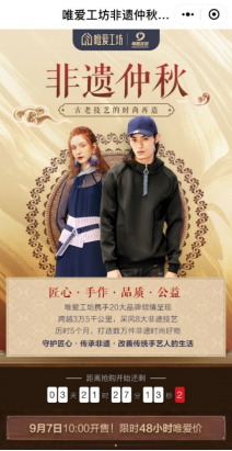 ????據了解,9月7日上午10時,唯品會唯愛工坊非遺萬物仲秋公益專場全面開售,上線48小時內享受唯愛搶鮮價。
