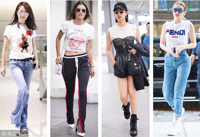 ????夏日炎炎怎么穿才最簡(jiǎn)約清爽?答案一定是T恤無(wú)疑了!只是一本正經(jīng)的尋常穿法又怎么會(huì)是時(shí)髦精的所愛,宋茜、吉吉帶頭玩起挽袖新花樣,大面積露玉臂,清涼又養(yǎng)眼?。▓D片來(lái)源:視覺中國(guó))