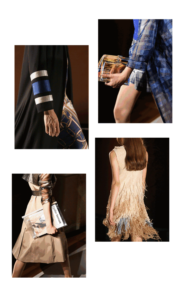 2019春夏系列全部運(yùn)用立體剪裁,圍繞著人體線條在空間上互相轉(zhuǎn)換,以優(yōu)雅的線條打造不失女性力量、氣場(chǎng)十足的造型;并且在面料選擇上也別具匠心:金屬絲面料,帶有水光、電光般的光澤,象征著記憶的輪廓,呈現(xiàn)走秀主題“時(shí)光”的線條和概念。