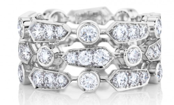| De Beers戴比爾斯Classic五行戒指 18K白金傳遞著經(jīng)典而現(xiàn)代的時(shí)尚宣言??傊?.75克拉。密鑲。戒指寬度:13 mm。 |
