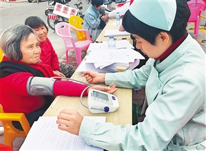 社康中心為老年人免費(fèi)量血壓。