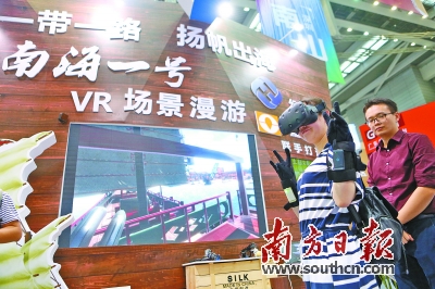 游客體驗(yàn)“南海一號(hào)”VR場景漫游(南方日?qǐng)?bào)記者 魯力 攝)