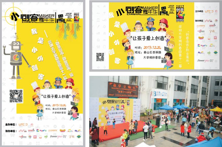 深圳大學(xué)城創(chuàng)意園主辦,活動(dòng)以創(chuàng)意街市+創(chuàng)業(yè)集市的形式,展示、銷售孩子的創(chuàng)意產(chǎn)品,并結(jié)合專業(yè)創(chuàng)客實(shí)驗(yàn)室、3D打印、增強(qiáng)/虛擬現(xiàn)實(shí)、機(jī)器人等科技、技術(shù),讓孩子們?cè)谳p松投入的氛圍中體驗(yàn)最前沿的科技產(chǎn)品和創(chuàng)客項(xiàng)目。“創(chuàng)新”、“實(shí)踐”、“分享”,活動(dòng)旨在培養(yǎng)孩子們的動(dòng)手創(chuàng)作能力、社會(huì)交往技能、團(tuán)隊(duì)協(xié)作、實(shí)踐技巧、集體榮譽(yù),拓展孩子們的創(chuàng)新創(chuàng)意思維,讓孩子愛(ài)上創(chuàng)造,逐步提升孩子的綜合能力,為將來(lái)更好地適應(yīng)社會(huì)的發(fā)展趨勢(shì)打好基礎(chǔ)。