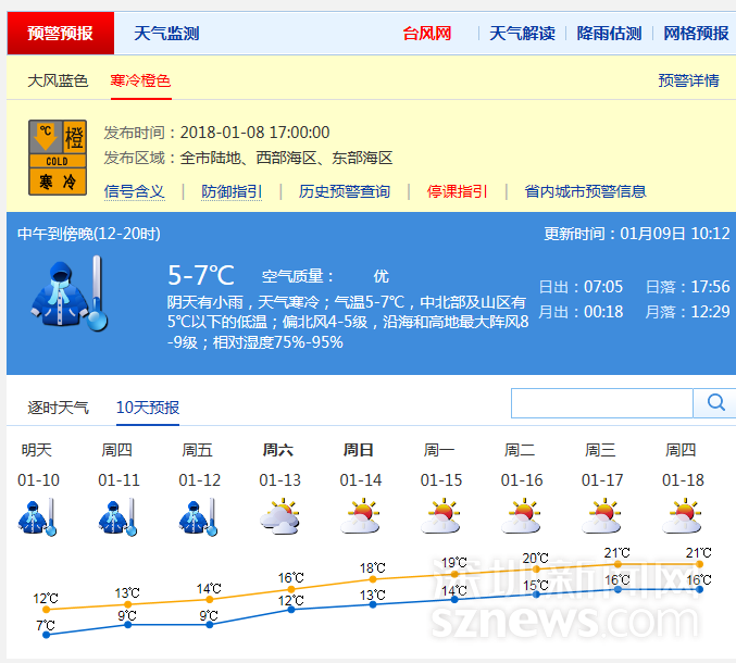 最低5℃ 深圳寒冷橙色預(yù)警生效 低溫持續(xù)5天