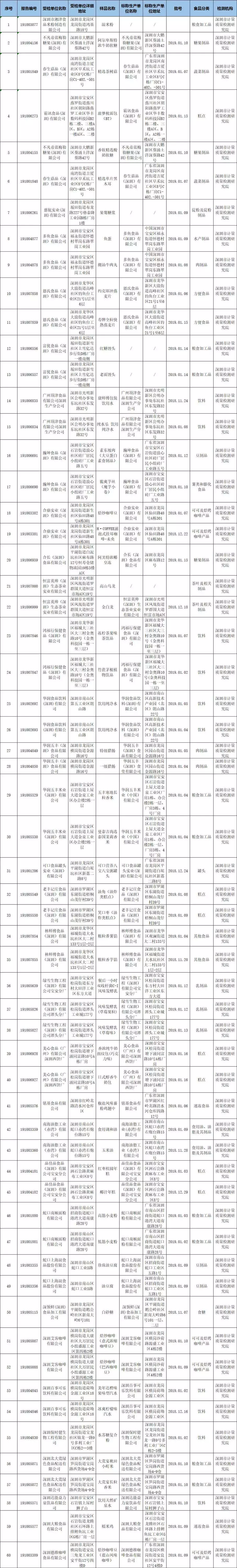 2019年食品安全抽樣檢驗情況通報