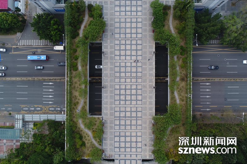 中心城屋頂平臺(tái)是深圳福田中心區(qū)空中連廊的一部分