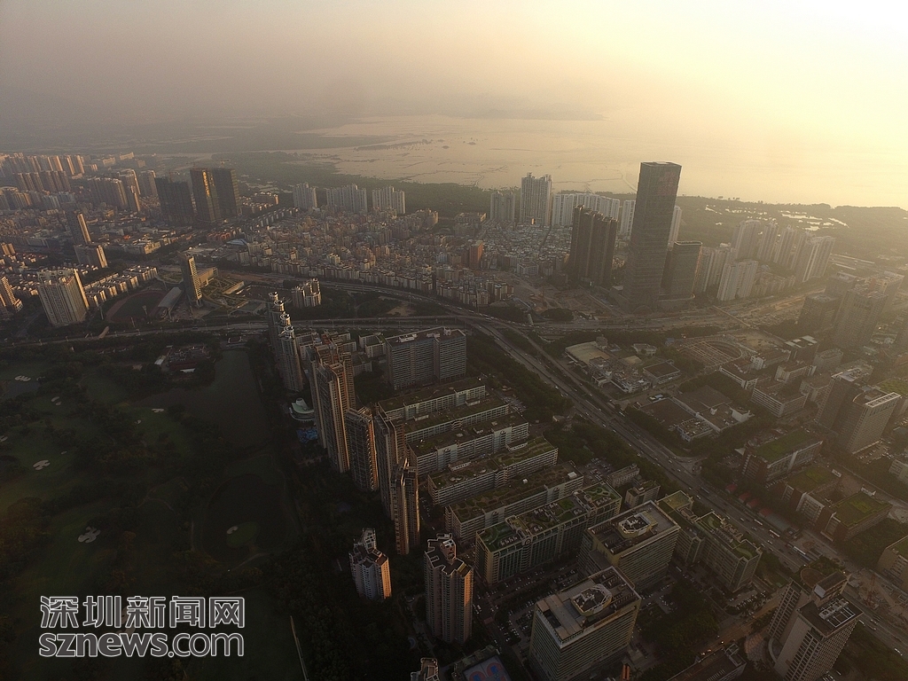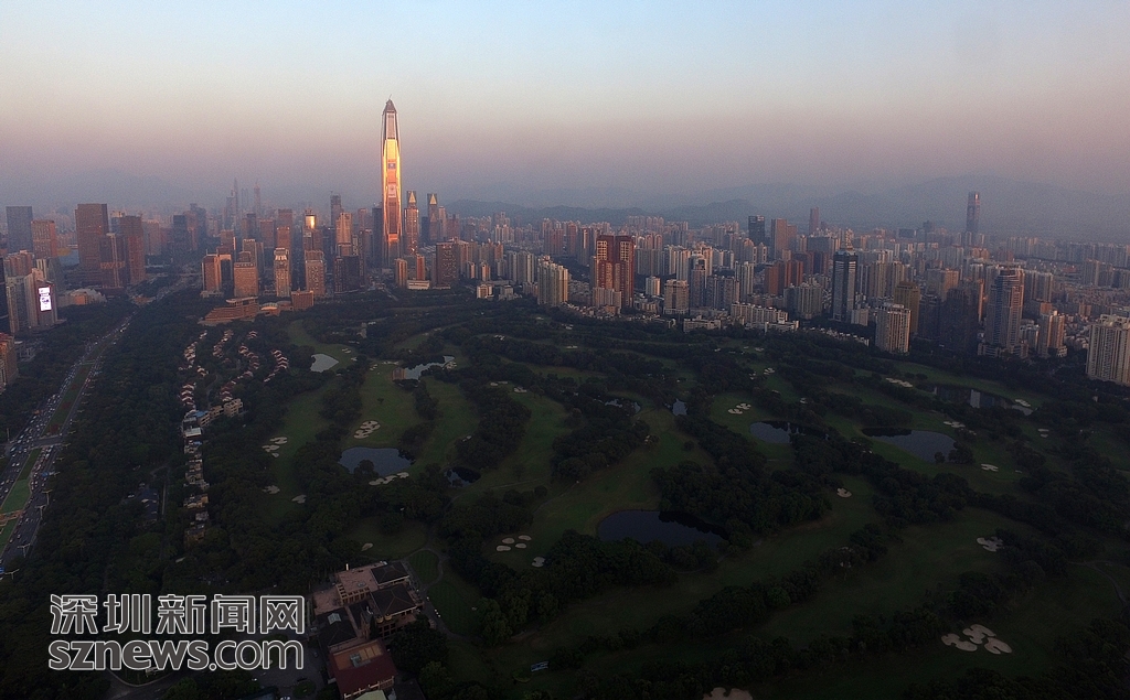 在夕陽西墜的低色溫下,高爾夫球場(chǎng)在周邊林立高樓和晚高峰車流的映襯下顯得格外安靜。深圳新聞網(wǎng)記者 陳飛 鄭曉鵬 攝