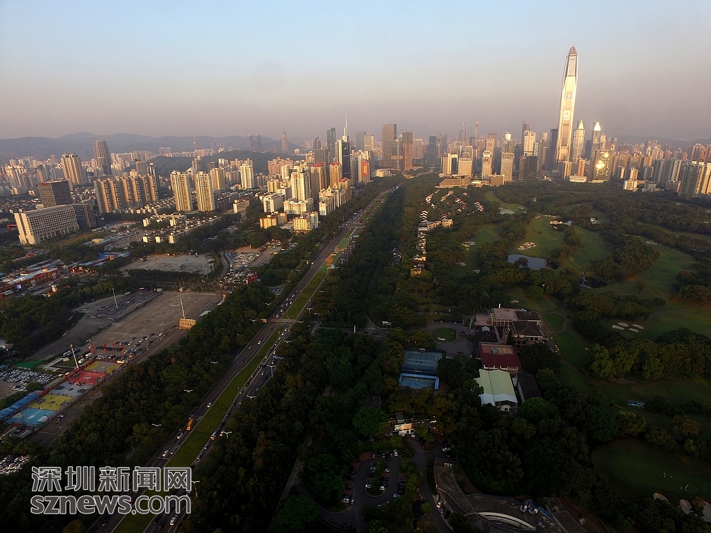 從高空俯瞰,深南大道就位于深圳高爾夫俱樂部球場(chǎng)旁邊