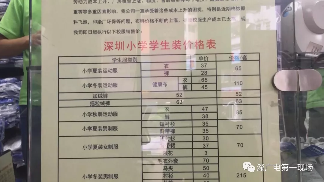 記者了解到,2011年,深圳校服曾進(jìn)行過調(diào)價(jià),當(dāng)時(shí)教育部門發(fā)布通告稱,由于廠家成本上升,校服價(jià)格統(tǒng)一調(diào)整,平均價(jià)格比之前高出14.02%。之后,這一價(jià)格標(biāo)準(zhǔn)一直沿用。