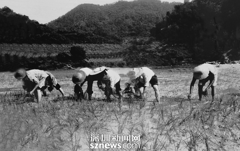 老書記張偉基(左一)和他帶領(lǐng)的南嶺村人當(dāng)時可能還不知道,他們正在譜寫改革開放深圳特區(qū)的新篇章