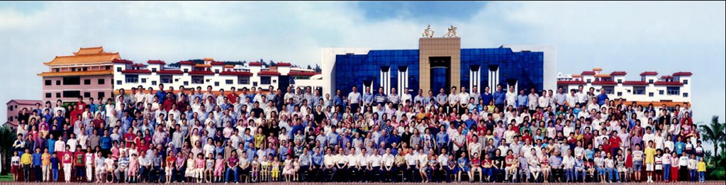 南嶺村村民在村委大樓前拍攝“全家?!保〝z于2001年)