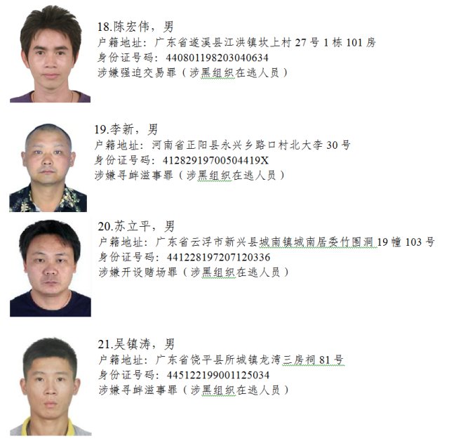 懸賞通緝!廣東這50名黑惡勢力嫌犯在逃