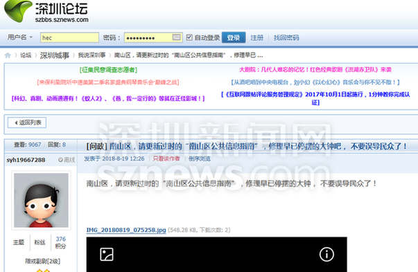 深圳新聞網(wǎng)8月24日訊(記者 何暢)近日,網(wǎng)友“syh19667288”在深圳論壇發(fā)帖《南山區(qū),請(qǐng)更新過(guò)時(shí)的“南山區(qū)公共信息指南”,修理早已停擺的大鐘吧, 不要誤導(dǎo)民眾了!》。據(jù)曝料,南山區(qū)“公共信息導(dǎo)向指南”指示牌中的地鐵路線信息嚴(yán)重滯后,亟需更新。