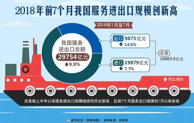 ① 商務(wù)部發(fā)布數(shù)據(jù)顯示,前7個(gè)月我國(guó)服務(wù)進(jìn)出口規(guī)模創(chuàng)新高。