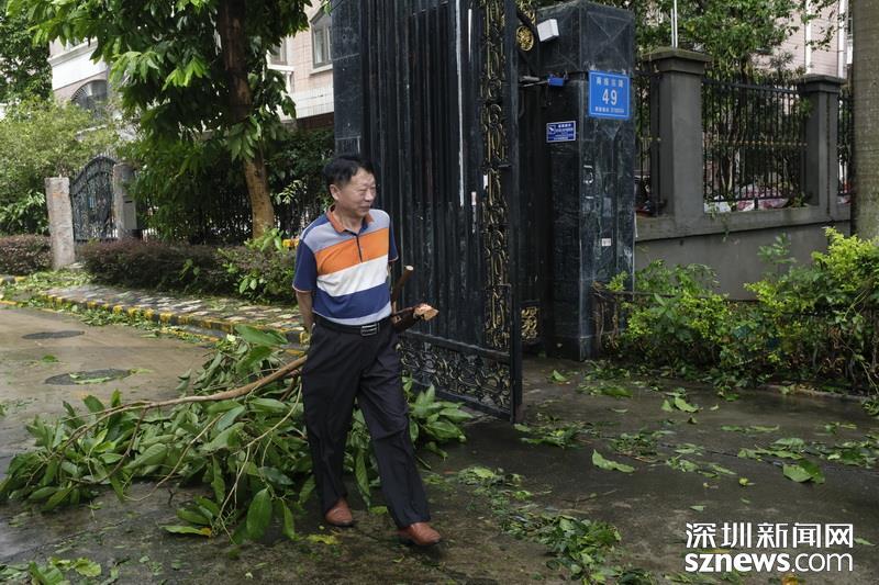 2018年9月17日10點(diǎn)12分,商報(bào)東二路富霖小區(qū)門口,一位市民從小區(qū)內(nèi)拖出已掉落的樹枝。