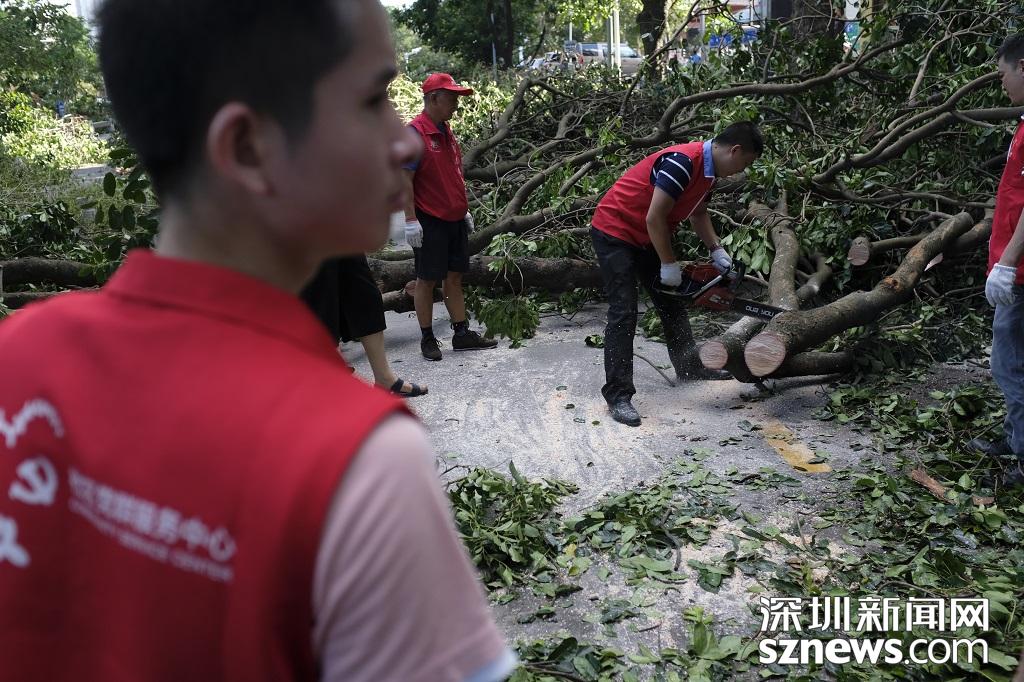 2018年09月17日下午四點左右,景華社區(qū)義工正在用電鋸割斷倒落樹木,從而實現(xiàn)通車。