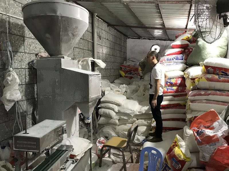 執(zhí)法人員來(lái)到位于龍東社區(qū)同昌路的一個(gè)工業(yè)區(qū)進(jìn)行突擊檢查。剛進(jìn)入該工業(yè)區(qū),執(zhí)法人員就發(fā)現(xiàn)有幾間鐵皮房大門(mén)緊鎖,通過(guò)門(mén)縫還能看到大量各品牌的洗衣粉、消毒液,以及各式設(shè)備數(shù)臺(tái)。經(jīng)檢查,現(xiàn)場(chǎng)共有這類(lèi)鐵皮房3個(gè),分散在工業(yè)園區(qū)3個(gè)不起眼的角落,占地面積超過(guò)200平方米。鐵皮房?jī)?nèi)環(huán)境惡劣、電線亂搭,地上堆滿各種標(biāo)識(shí)的加工原料以及各種日化品牌的包裝袋,數(shù)量巨大。