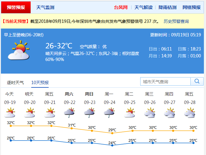 市氣象臺預測,20至24日,深圳仍以多云天氣為主,有短時陣雨,最高氣溫29℃~32℃。25至26日,晴天間多云。