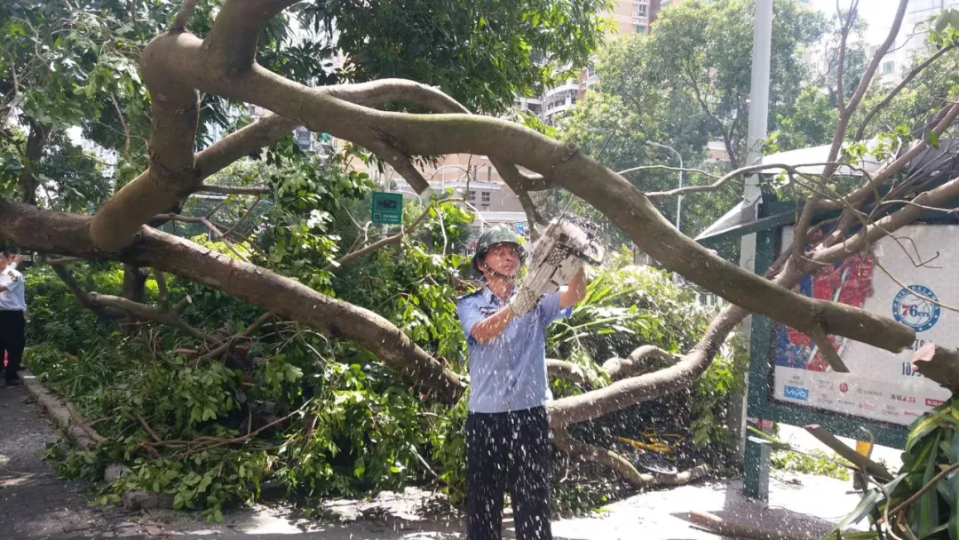 從臺風前到臺風后,唐順華一直在一線。他不僅是一個指揮員,還是一名戰(zhàn)斗員,一起去處理倒伏樹木、清理路障。因為人手非常有限,他不僅一直要組織指揮,自己也一直身體力行,連續(xù)90多個小時沒有回家,一直在轄區(qū),排查隱患,處理事情。