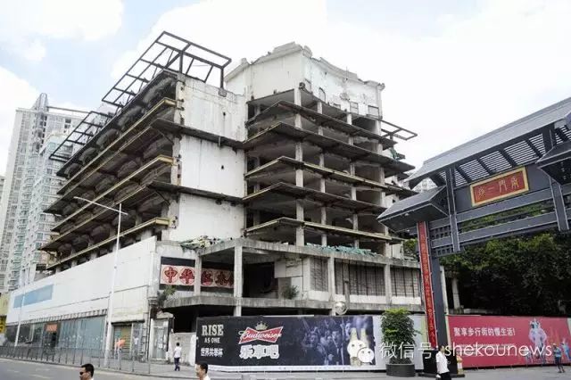 ▲破舊的南油酒店與翻新的南門一坊商業(yè)街形成巨大的視覺(jué)反差。蛇口消息報(bào)記者賀志熙攝