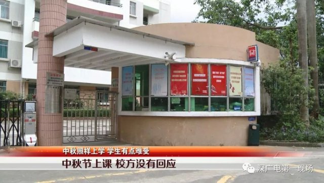 今天,記者在深圳明珠學(xué)校大門口從上午十點(diǎn)多一直等到中午十二點(diǎn),期待校方就高三學(xué)生中秋節(jié)上課的情況,予以回應(yīng)??墒牵T衛(wèi)保安多次聯(lián)系校方領(lǐng)導(dǎo),自始至終,校方都沒(méi)有人出面接受記者采訪。