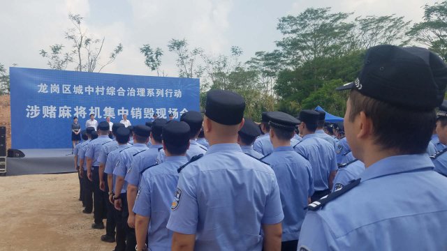 9月26日上午10時(shí)36分,在寶龍街道龍崗分局涉案物品管理中心,龍崗區(qū)舉行城中村綜合治理系列行動(dòng)之涉賭麻將機(jī)集中銷毀現(xiàn)場(chǎng)會(huì),一次性集中銷毀兩千余臺(tái)涉賭麻將機(jī)。