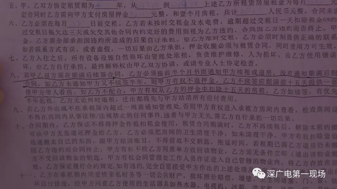 出租方一再推脫,眼看著國(guó)慶節(jié)的假期都結(jié)束了,這押金還沒還回來,此時(shí)出租方又給出了新的理由,說租房合同上,寫明退房需要提前15個(gè)工作日出示書面通知,否則押金有權(quán)不退。