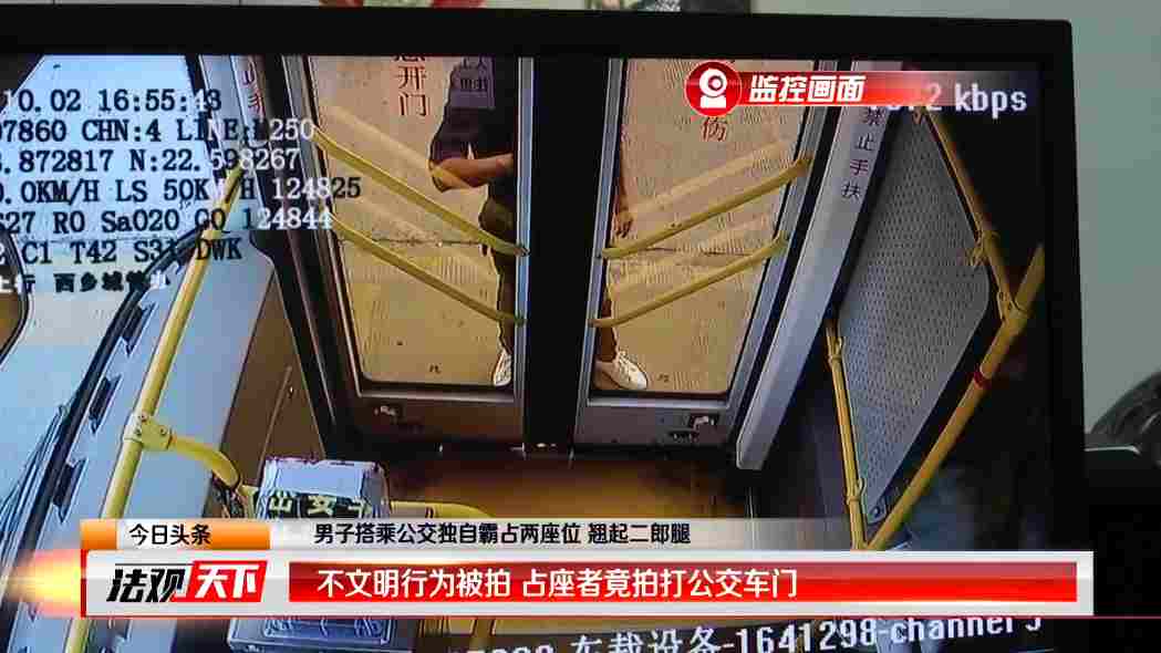 不文明行為被拍占座者竟拍打公交車(chē)門(mén)