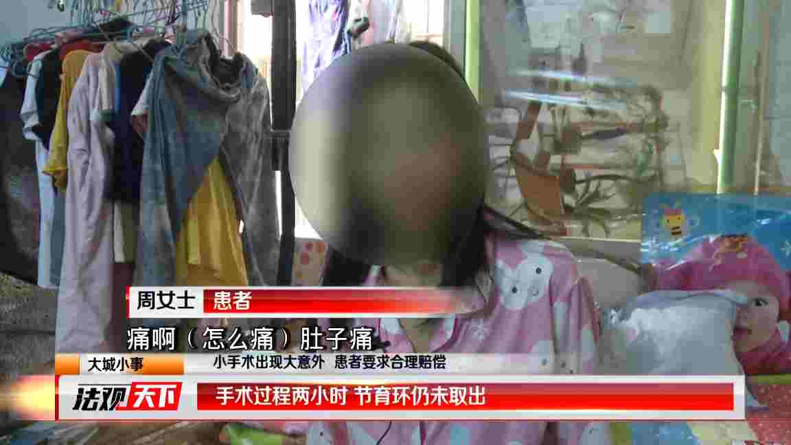 周女士說,原本醫(yī)生在電話中說要打麻藥,但是到了手術臺卻一直沒有進行這個步驟。而接下來的手術過程也非常不順利,整整進行了兩個小時,節(jié)育環(huán)仍未取出。由于周女士疼痛難忍,最終手術不得不停止。