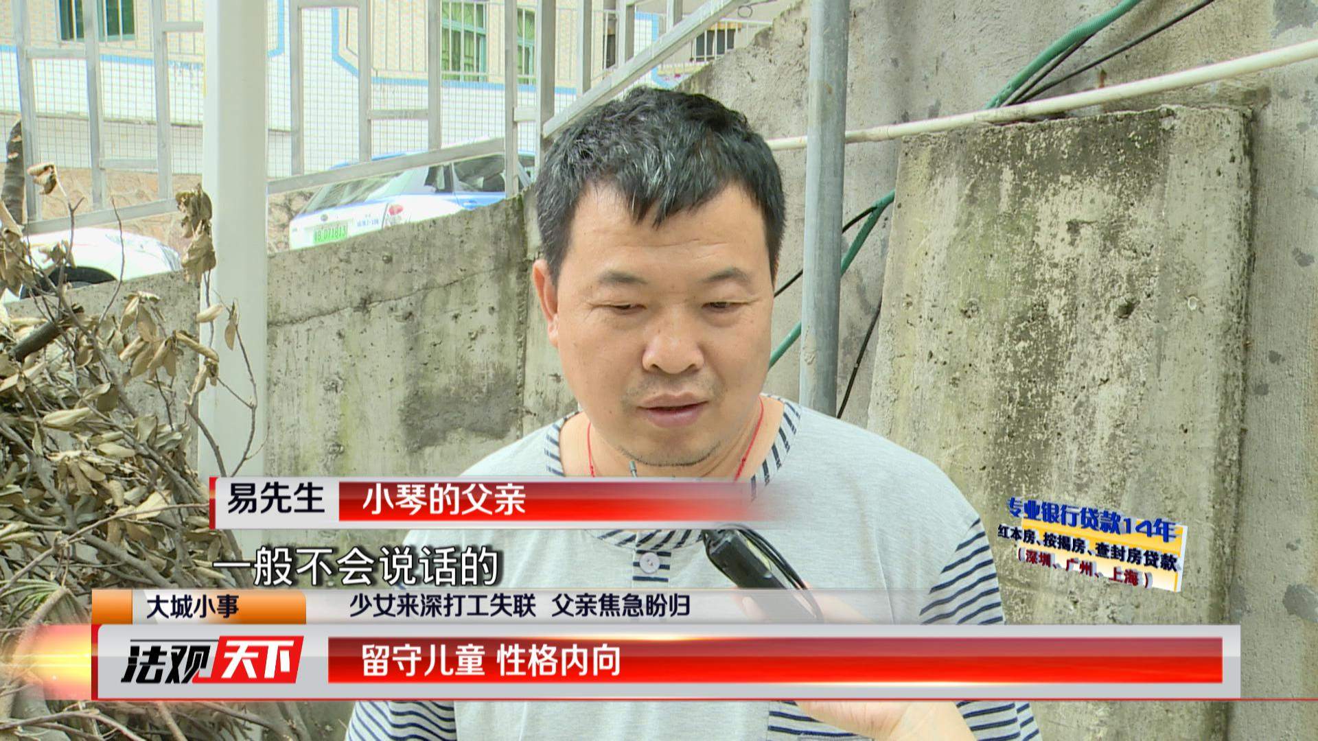 與小琴一起失蹤的還有小海,小海今年才14歲,是小琴的初中同學(xué),兩人當(dāng)初是一起從邵陽逃學(xué)來到深圳的。小海和小琴來到深圳后,跟易女士進(jìn)了同一家工廠。9月30號(hào)晚上,正是易女士最先發(fā)現(xiàn)兩個(gè)女孩失蹤的。她告訴記者,此前兩個(gè)孩子一直都很正常。女兒突然不辭而別,至今十多天沒有跟家人聯(lián)系,她既擔(dān)心又不解。小海的母親易女士告訴記者,這么多年以來,都是小海的奶奶把她帶大的。自己一直在外面打工掙錢,覺得小海跟她的感情也不深。