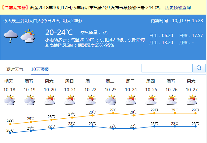 市氣象局發(fā)布未來十天天氣預報(數據更新于10月17日15時28分)
