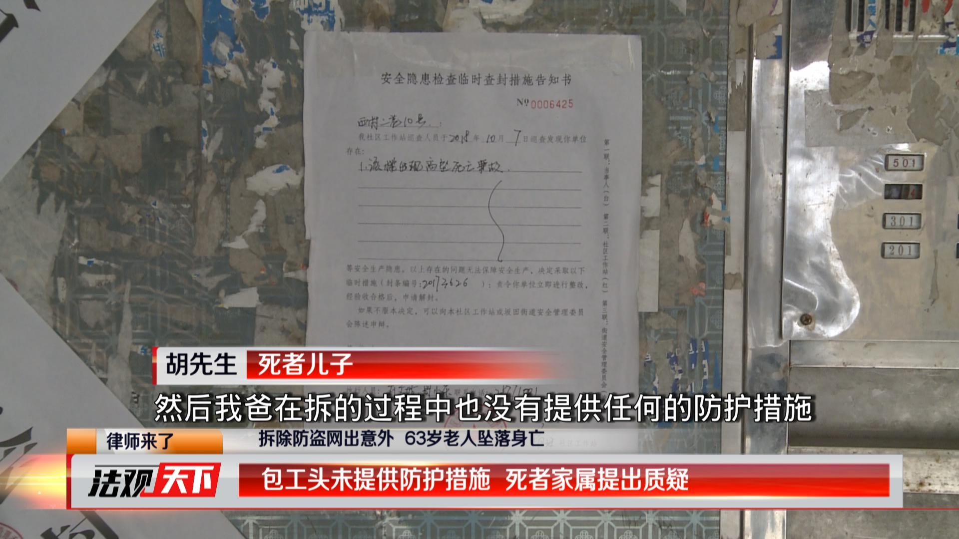 龍崗63歲老人拆除防盜網(wǎng)墜樓身亡 只因身上沒有系安全繩