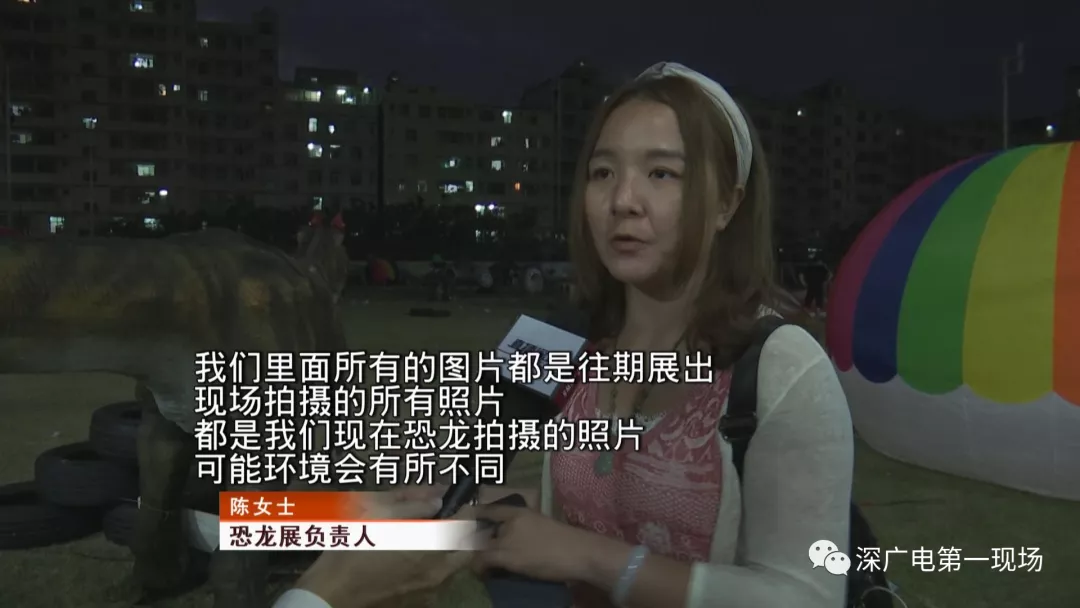 恐龍展負責人陳小姐說:“我們里面所有的圖片都是往期展出,可能環(huán)境會有所不同,因為以前我們有在生態(tài)園公園、景區(qū)里面辦,是有一些樹木為背景的,因為我們這里只有一大片草地,可能看起來的話,造景不太美觀?!?/p>