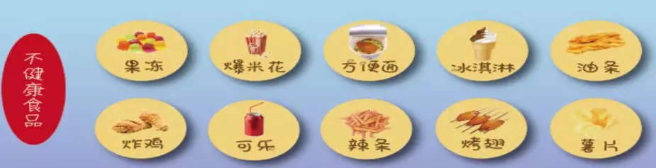 4.選擇營(yíng)養(yǎng)健康的食品,少吃薯片、燒烤、方便面等不健康食品。